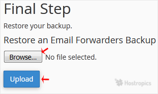 5. Click on Browse. Select the backup file from your computer and click on Upload.