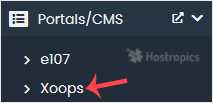 4. On the left side, locate the Portal/CMS category. Click on it and then on the Xoops link that appears.