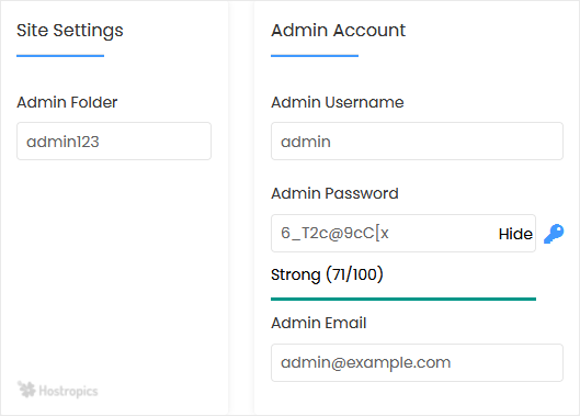 • Admin Folder: Enter the name of your admin folder, such as admin123.