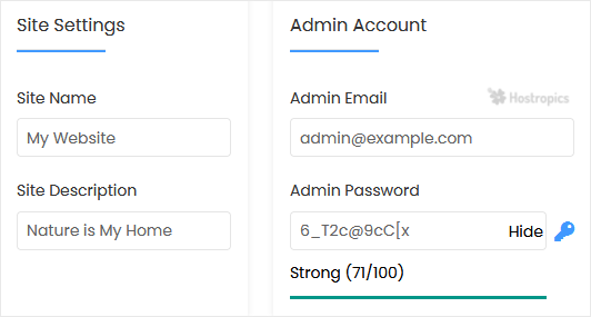 • Admin Password: Use a strong password.